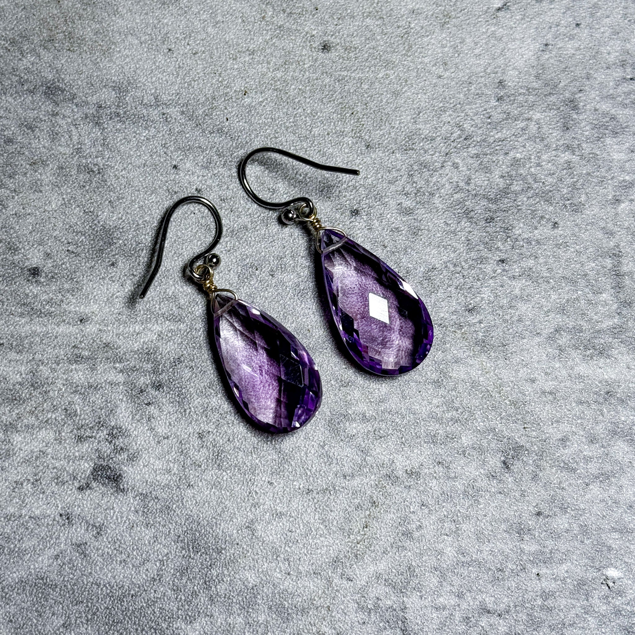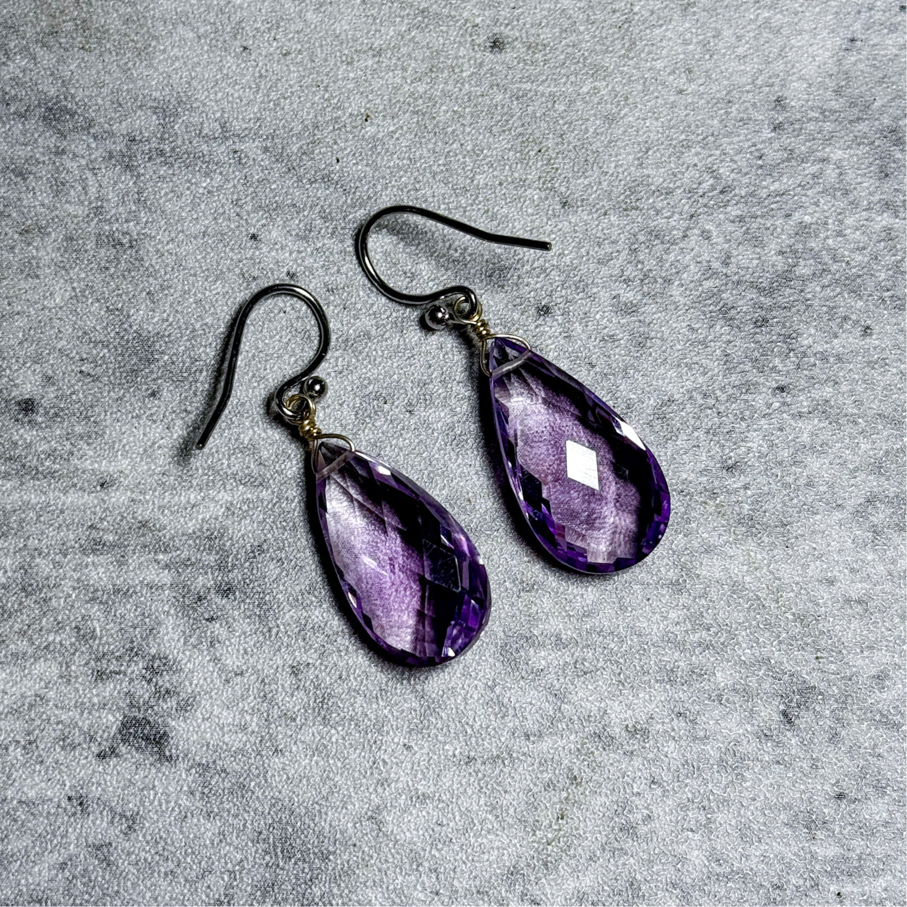 925 sterling silver Expertly crafted with genuine amethyst and high-quality 925 sterling silver, these faceted drop earrings provide a touch of elegance and sophistication to any outfit. With a timeless design and durable materials, these earrings are a valuable addition to any jewelry collection.