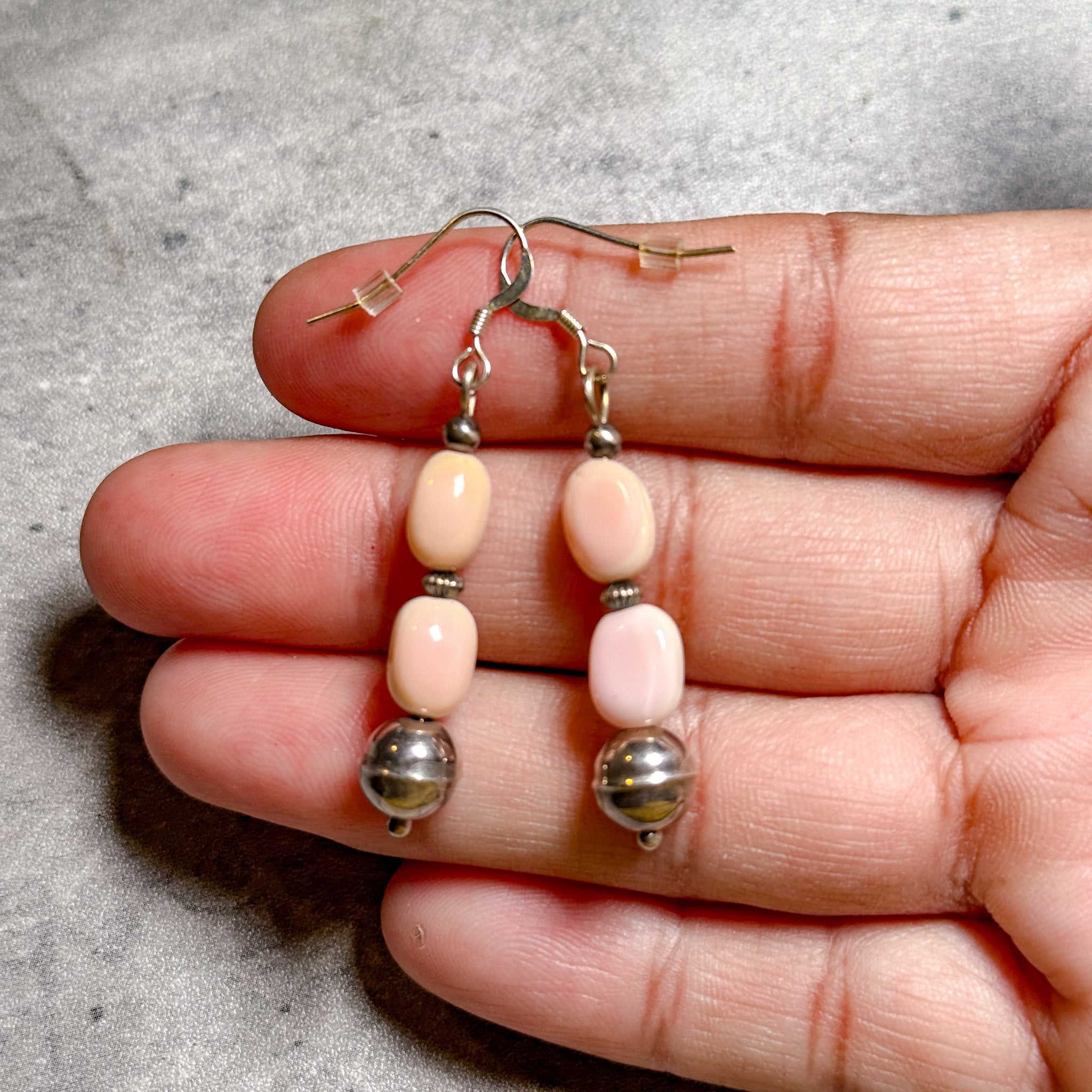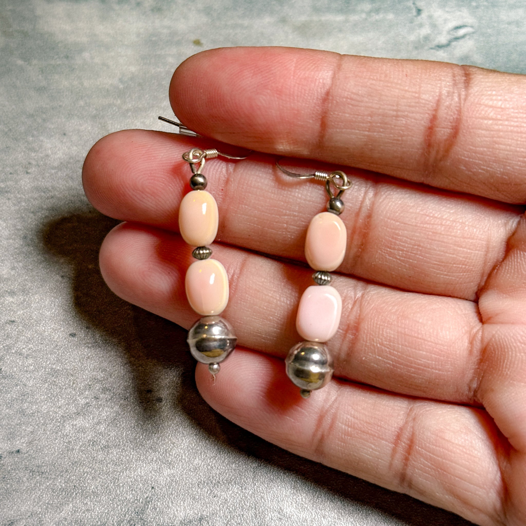 925 sterling silver earrings Expertly crafted by Blanca, these earrings feature stunning pink conch and Navajo pearls set in 925 sterling silver. This unique combination offers a timeless and elegant style that is sure to make a subtle statement. With these earrings, you'll have a versatile accessory that will elevate any outfit and stand the test of time with its durability and high-quality materials.