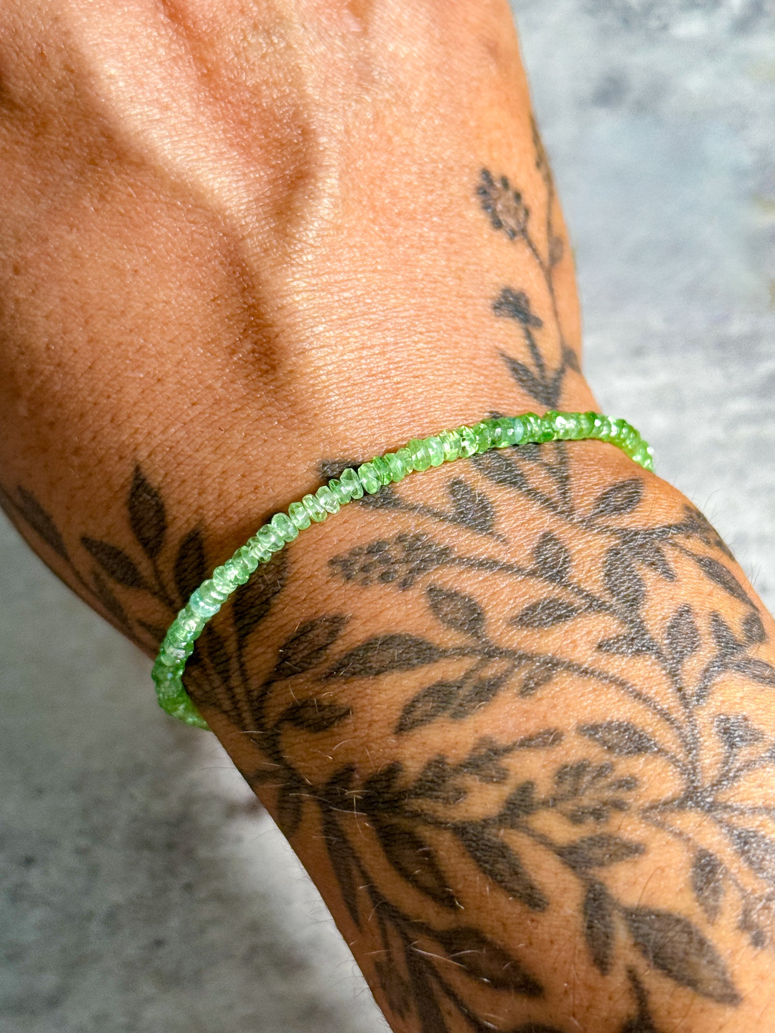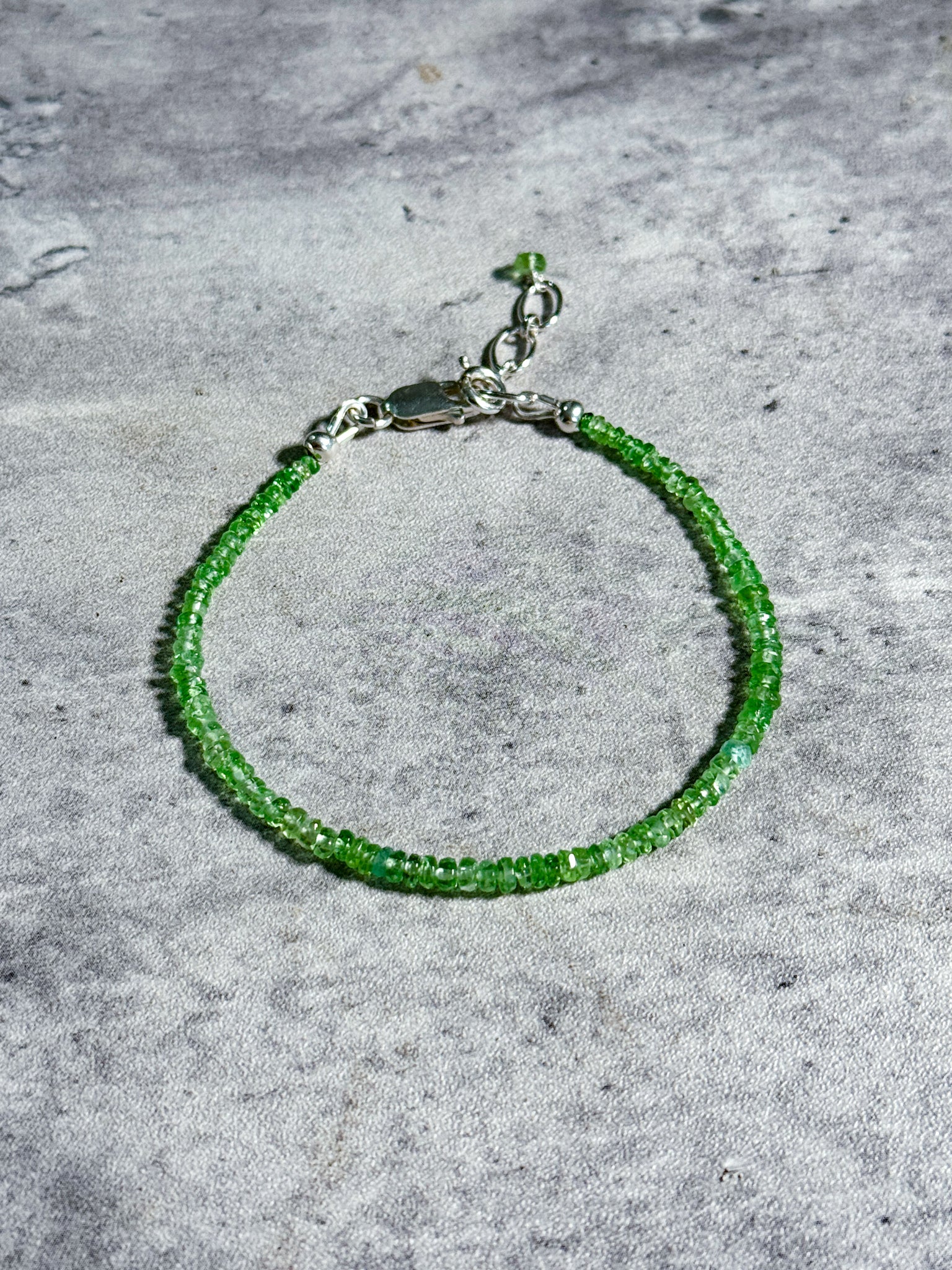 This bracelet is crafted with 925 sterling silver, ensuring lasting quality for your jewelry collection. The tsavorite garnet faceted rondels add a timeless and elegant touch to your wardrobe.