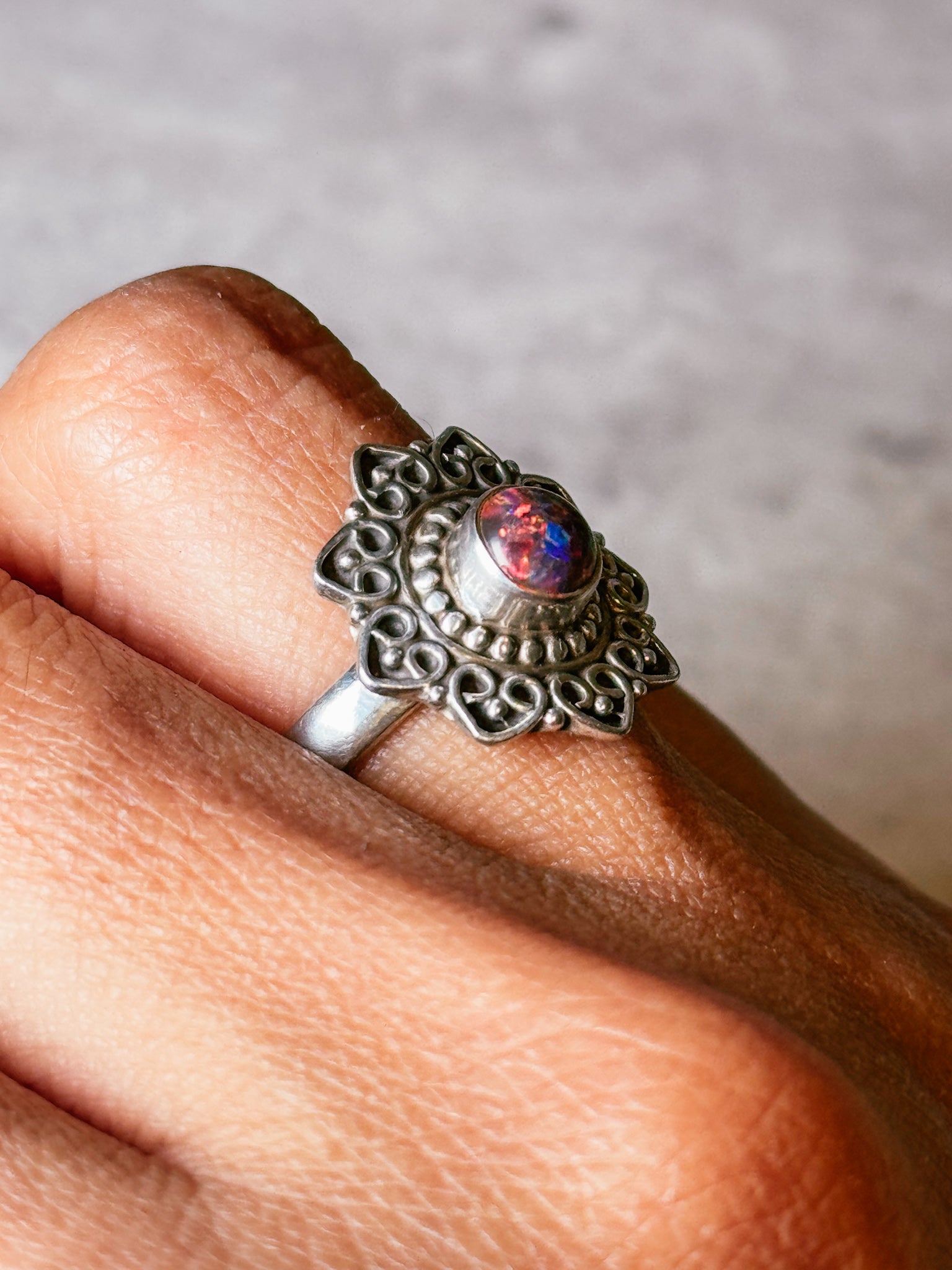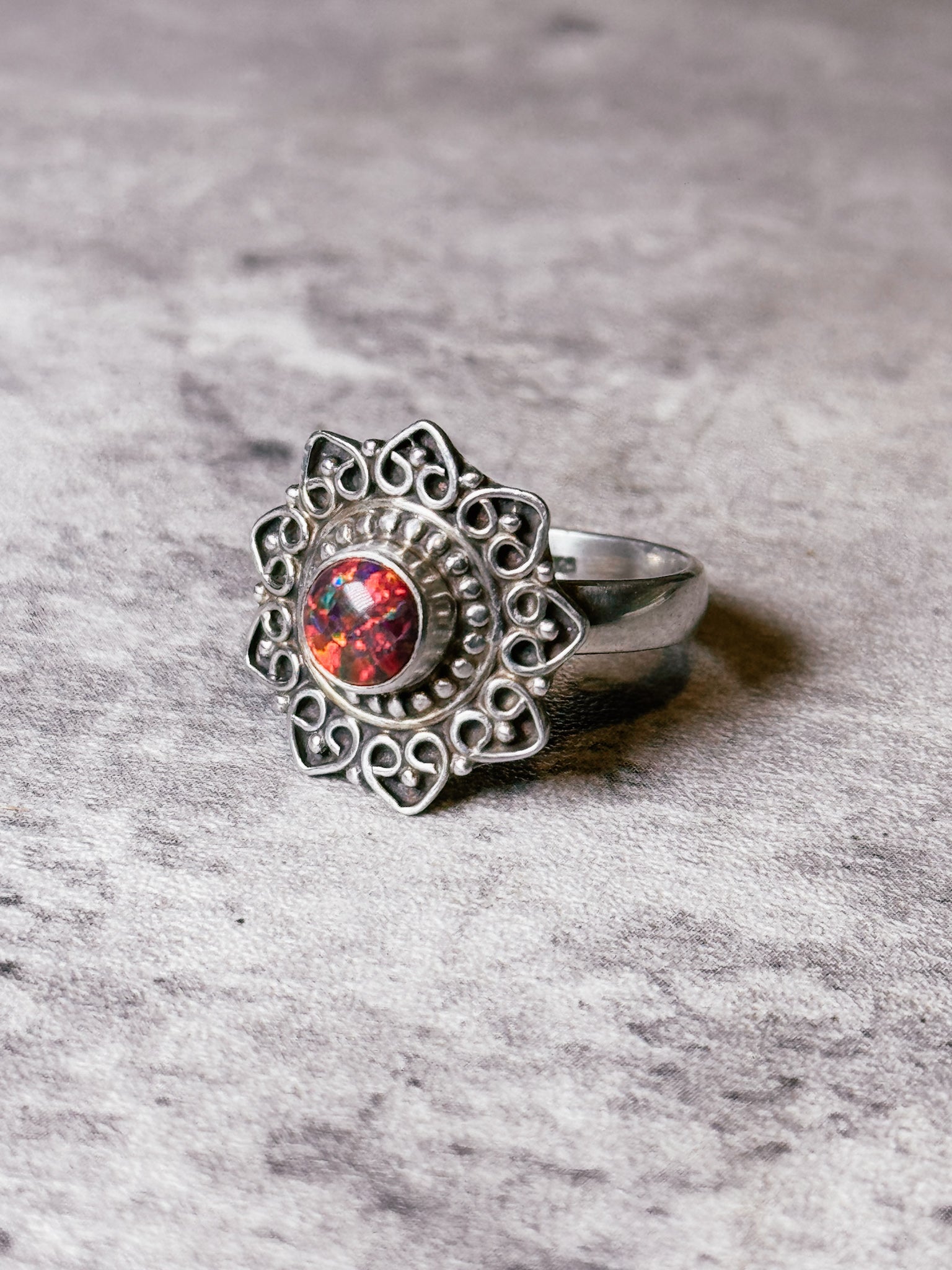 Red fire opal 925 ring sz7.75